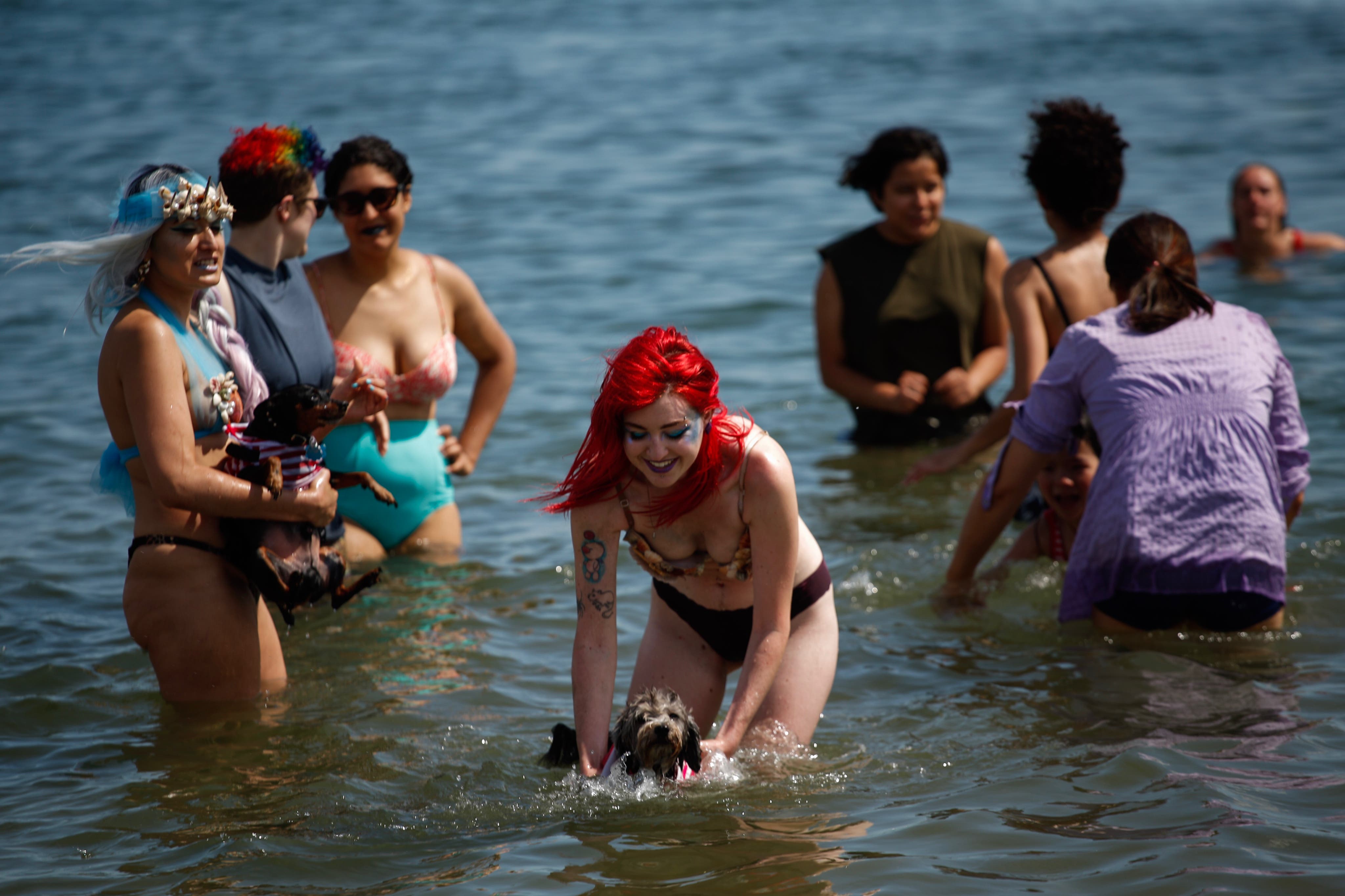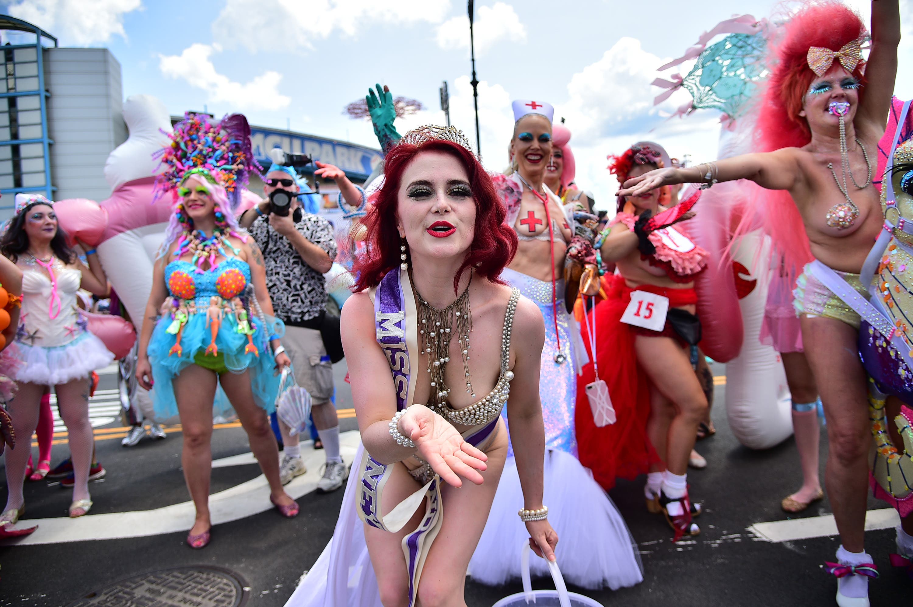 Among the celebrities in attendance was Miss Coney Island 2019, a burlesque artist named Pearls Daily, who sported Ariel-red hair, a tiara and a sash, but no green fins.