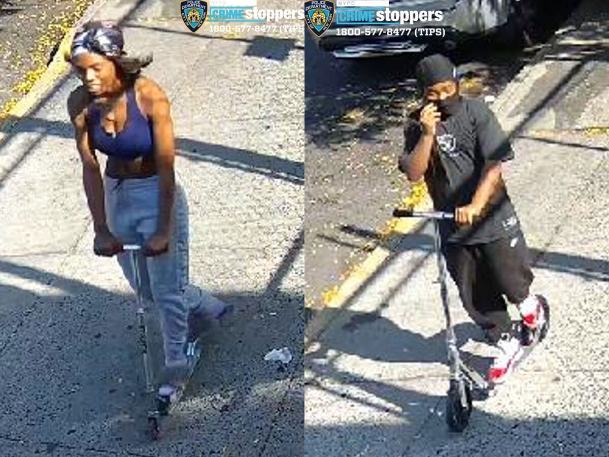 BROOKLYN, NY — Two people on Razor scooters who attempted to steal an 88-year-old woman's purse in Sunset Park on Sunday are on the loose, New York City Police Department officials say.