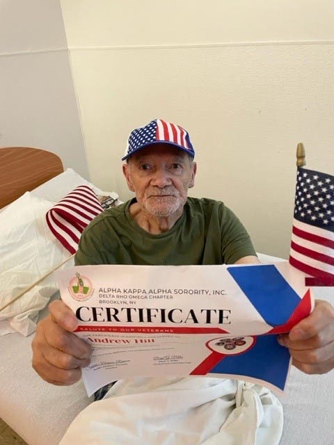 Here in Brooklyn, three Centers Health Care skilled nursing facilities have nearly 50 veterans altogether and they all honored them in their own special way. Concord Nursing and Rehabilitation on Madison Street in Bedford-Stuyvesant welcomed the folks from Alpha Kappa Sorority, who gave a goody bag with an American flag and a gorgeous printed personal certificate. Later in the day, the Recreation Department showed the Tom Hanks classic, “Saving Private Ryan”. It was indeed a great time.