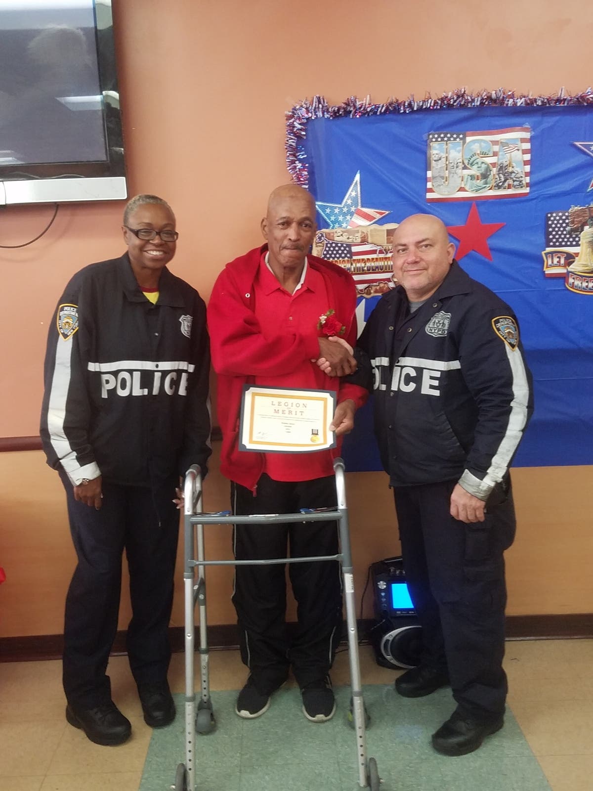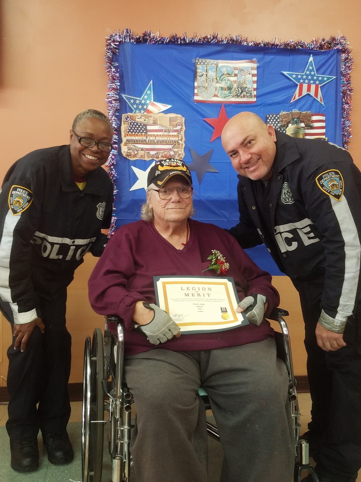 At Brooklyn Center, special guests were two from New York City's finest, NYPD Police Officers Hector Vargas and Candice Harris, both from the 70th Precinct on Lawrence Avenue in Brooklyn, and they handed out certificates to the veterans there. At Bushwick Center, Brooklyn’s own Sgt. Leamon Grady and Sgt. Stan A. Foster, both from the U.S. Army, were on-hand for the certificates part of the ceremony, saluting each veteran. In fact, Sgt. Grady is no stranger to Bushwick Center as he visits the veterans and the staff often.