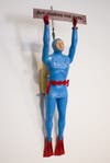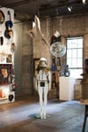 A common theme in Byun's work is female mannequins and busts, repeated in many of his sculptures. On one exposed brick wall, one of his busts has sprouted golden wings; on the other side of the room, another has been launched into space. Byun's relationship with these objects is a personal one, and each and every one of them has a life and personality of its own.