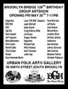 Brooklyn Tattoo® and urban Folk Art® Gallery are proud to announce the 3rd annual Brooklyn Bridge Birthday celebration. This is a 2 part event starting on May 25th with a group art show of over 30 local artists and their homages to the Brooklyn Bridge. Then on Sunday, May 27th, being that the bridge turns 129 (on May 24th), Brooklyn Tattoo® will be offering $29 Brooklyn Bridge tattoos on a first come first serve basis from 1-7. There will be over 20 predesigned images to choose from. More details will be posted at urbanfolkart.com or can be viewed on the event page.