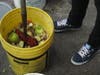 The "Golden Apple Club" is a group of twenty 6 - 8 graders. The club meets every Wednesday to collect and sort recyclables and incorporate their schools' combined food waste – up to 76 pounds a day – into tumbling compost bins behind the school.