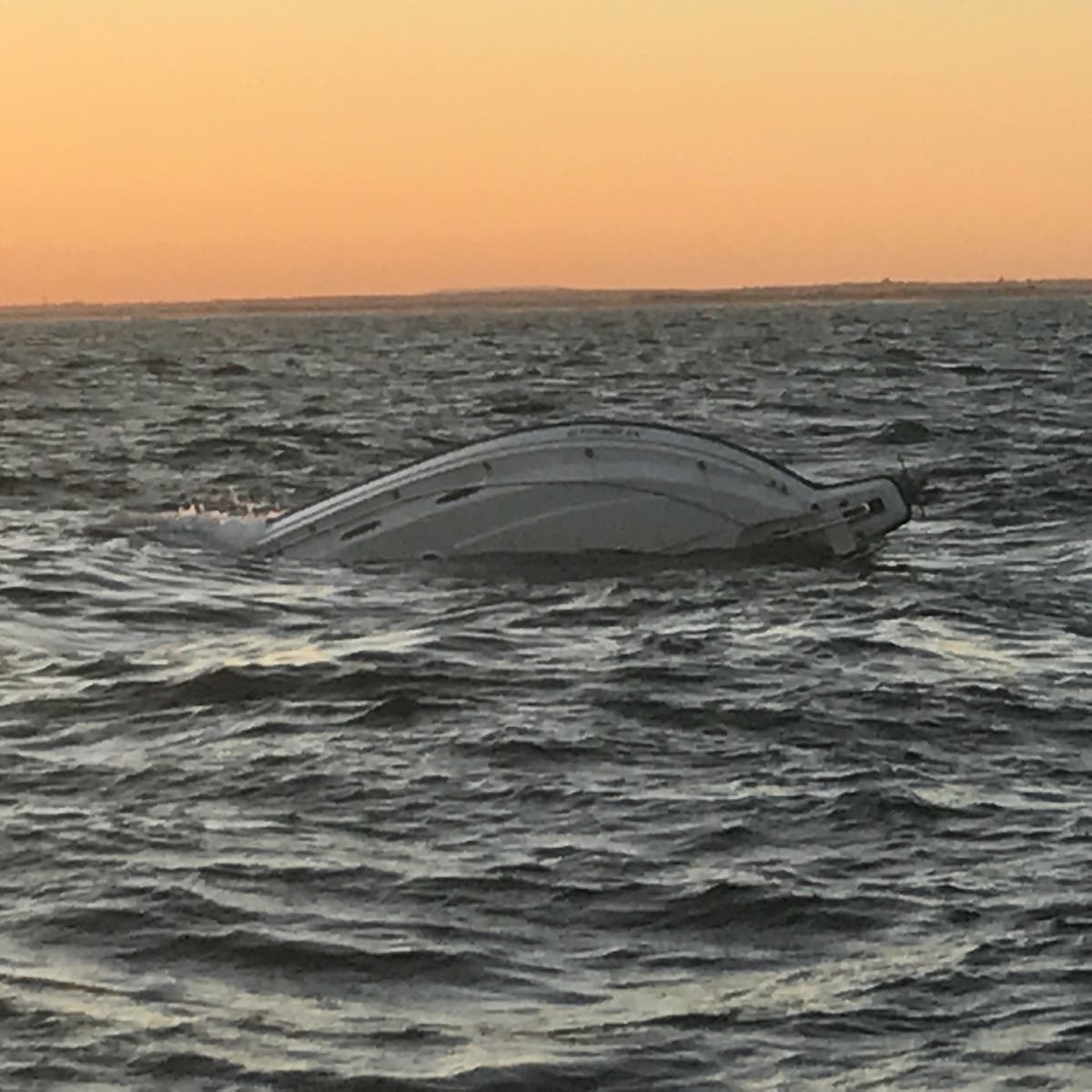 EAST MORICHES, NY – Two men and a teenager were rescued from a sinking boat near Moriches Inlet Wednesday, police said.