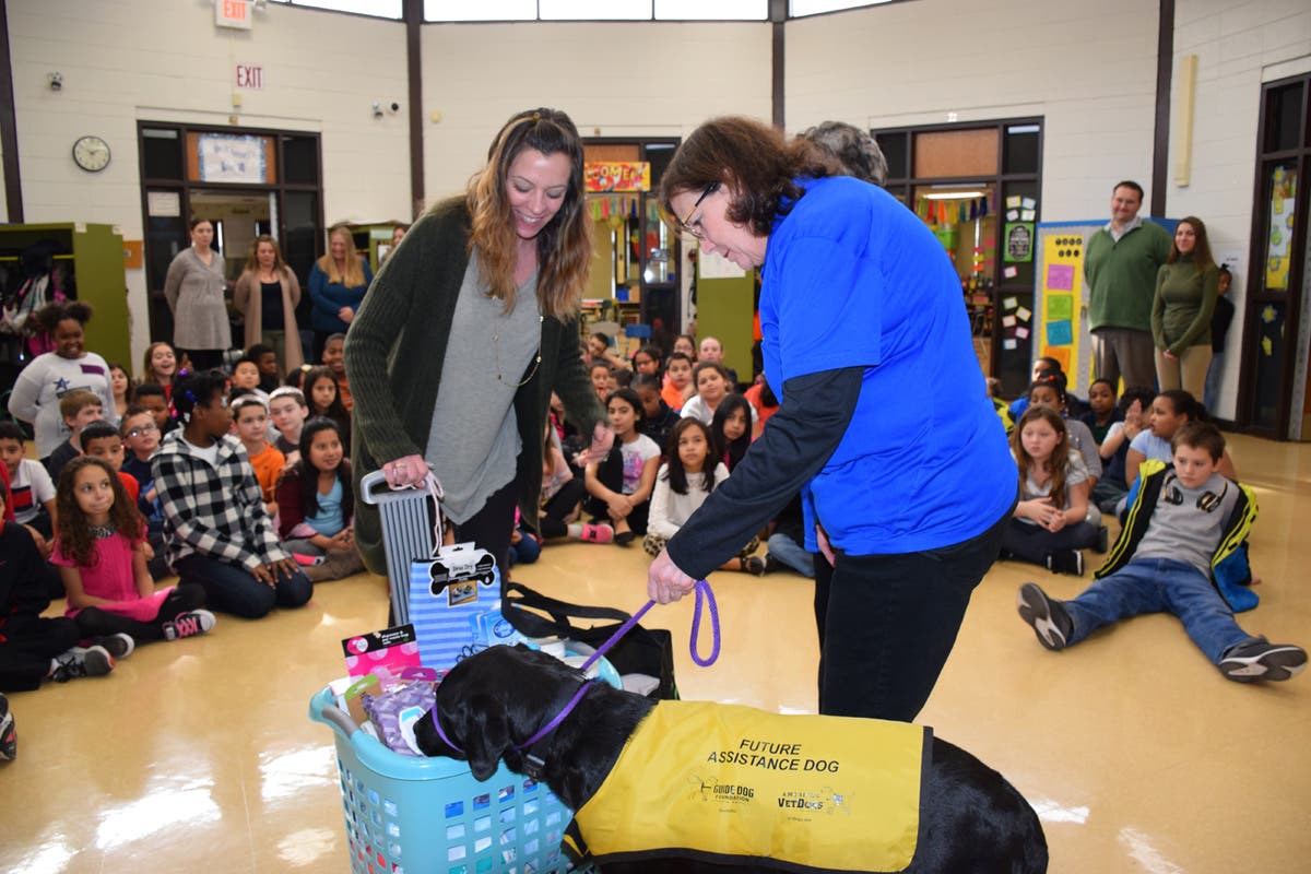 At the conclusion of the assembly, students and staff presented the Guide Dog Foundation with a generous donation of items such as blankets, towels, sanitary wipes and more. The special assembly was organized by fourth-grade teacher Nicolle Ranieri and attended by students in Alison Conklin’s, Susan Gleason’s, Kate Johnson’s, Sharon McCue’s, Leah Olivo’s and Thomas Short’s classes.