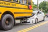 The crash took place just before 3 p.m. when a car and a school bus, with kids onboard, collided between Tuttle Avenue and Pleasant Valley Road; both vehicles were heading east, the Eastport Fire Department confirmed.