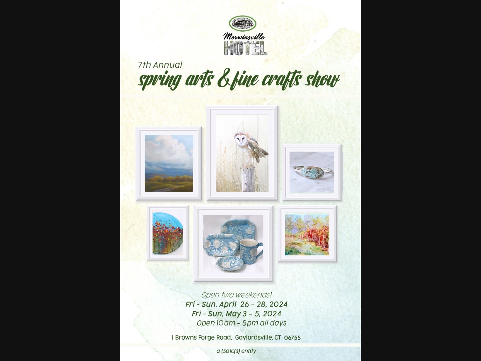 Mother’s Day gifts and local art is a focus at the seventh annual Spring Arts and Fine Crafts Show at the historic Merwinsville Hotel in Gaylordsville, CT. The organization will offer six days to shop over two weekends before Mother’s Day. The show will again be on two weekends, April 26-28 and May 3-5, for three days each weekend (Friday, Saturday and Sunday) from 10 a.m. to 5 p.m. each day.