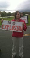 Most of the marchers are friends and neighbors, people from right around here. Lately though people are showing up from farther afield. Here’s Angela Monti Fox, seeming indefatigable and experienced in these matters. I tell her I saw her son Josh (director of Gasland, learn more here) at a public meeting on fracking in Katonah and she says, “he gets around.” I talk to people who made the trip today from Pennsylvania, Westchester County, New York City. I take a picture of a woman with a homemade “No Explosion” sign. I talk to a young man whose sign says “Ask me why I occupy.” He tells me it’s because he cares so much about his future and gives me a card for Occupy Minisink.