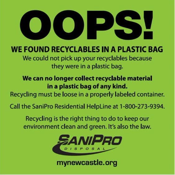 New Castle instituted a groundbreaking plastic bag ban this year. Now the company that picks up recyclables in town is adding its own.