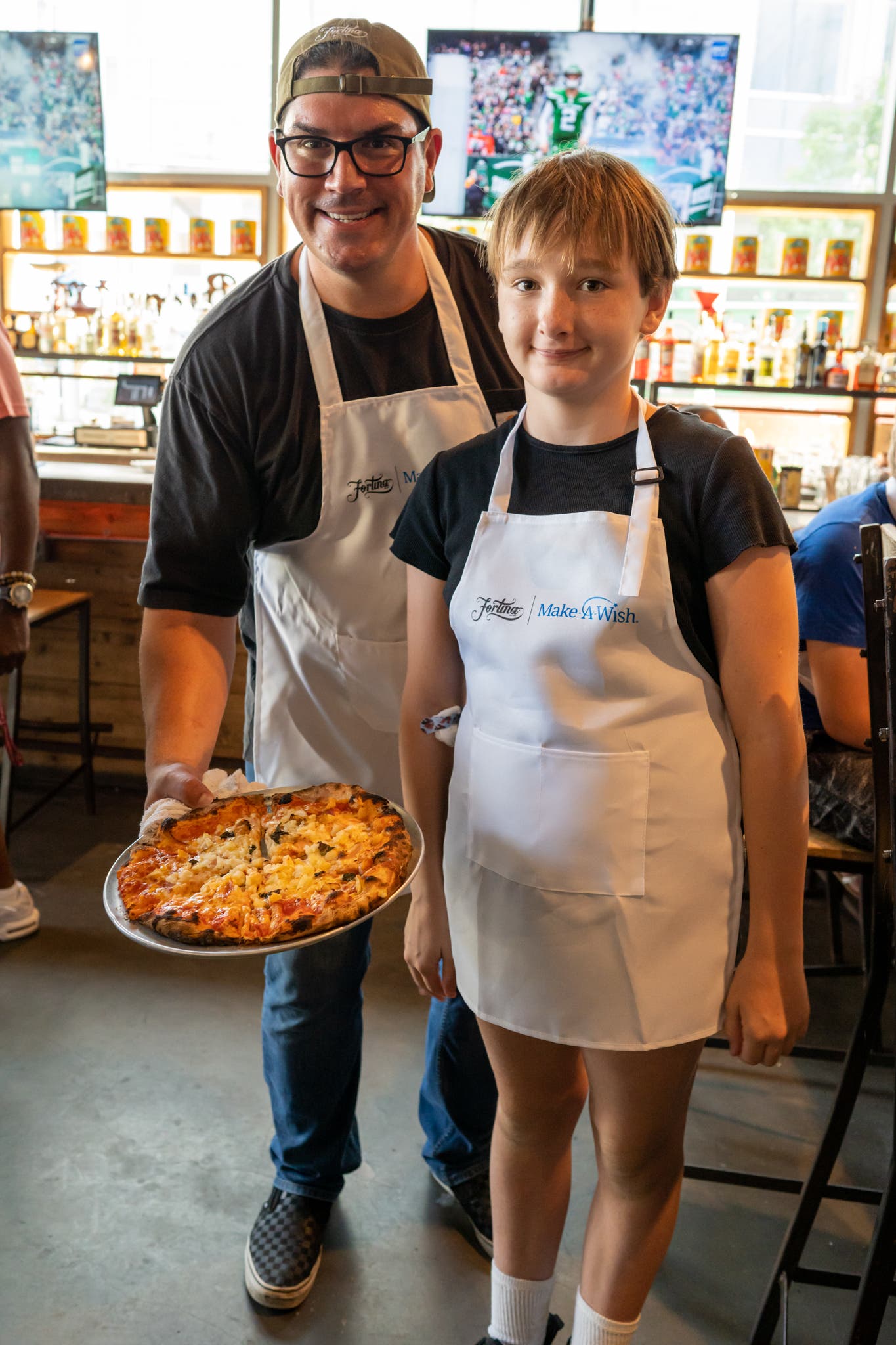 The Fortina team, led by Director of Operations Samantha Melisi and Culinary Director Paul Failla, provided an afternoon of fun for five wish children with a visit to the restaurant. The highlight of the day was creating their own signature pizzas, including a take on a classic pineapple and ham Hawaiian-style pie, a meat-lovers pie with sausage, pepperoni and meatballs, and even a pizza with potatoes as a topping. Fortina is featuring one of the children’s pies on the menu each month, with net proceeds from those sales benefiting the Make-A-Wish foundation.