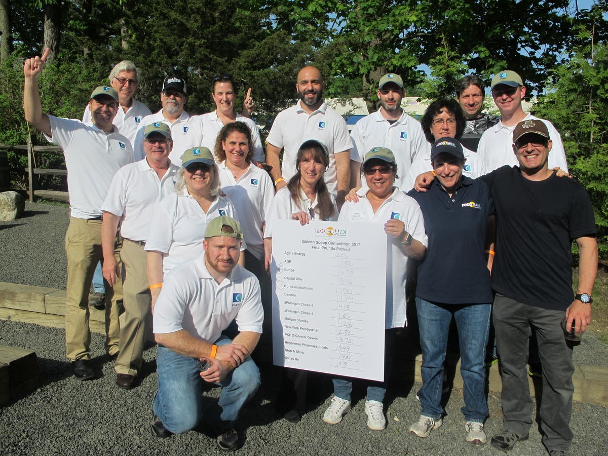 MOUNT KISCO, NY — Food Bank for Westchester, the leading hunger-relief organization serving Westchester County, hosted its 9th Annual Golden Scoop Corporate Competition May 19 to help raise awareness of hunger. Fourteen corporate teams of 20 employees competed to see who could repack the most pounds of pasta from bulk quantity to one-pound bags in one hour. Mount Kisco-based Curtis Instruments was the winner, packing an astounding 1,700 lbs. of pasta in one hour.