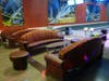 The bowling alley, which takes up 30,000 square feet of space, has a large family section and 12 lanes, coupled with flashing lights and a series of pin-shaped chandeliers. A smaller VIP section has room for seven lanes, lounging couches and event hosting space. The bowling space was created by converting extra go-kart track space.