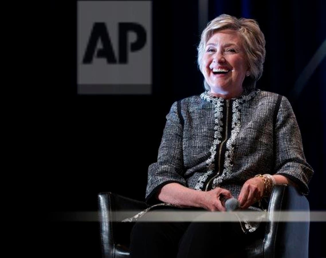 PHOTO: Former Secretary of State Hillary Clinton laughs after taking a question while speaking during the Book Expo event in New York, Thursday, June 1, 2017. Credit: Craig Ruttle/Associated Press