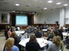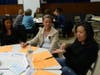At the knowledge cafe, attendees broke up into tables for the topics, switching places three times for each.
