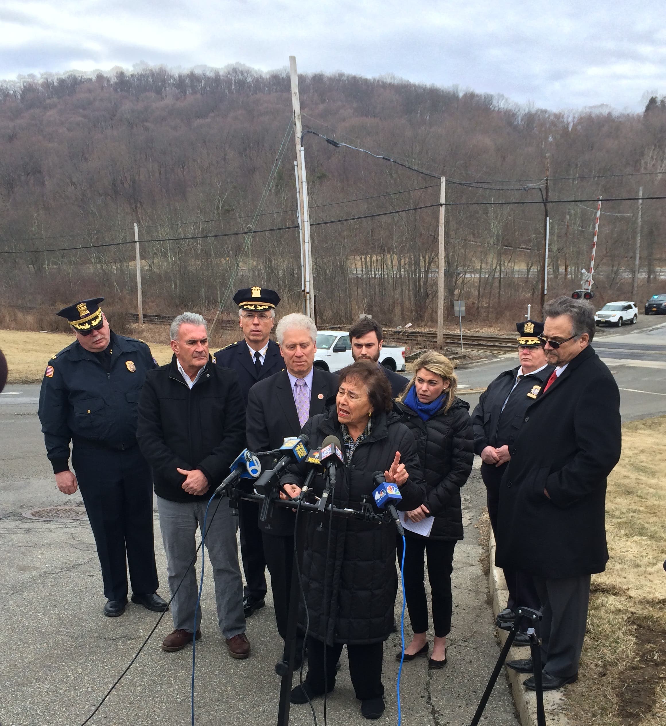 Joining Lowey and Feinberg today were President of the Metro-North Railroad Joseph Giulietti, Chief Safety Office of Metro-North Railroad Anne Kirsch, Metro Transit Authority (MTA) Chief of Police Michael Coan, State DOT Planning and Program Manager Tom Weiner, Westchester Board of Legislators Chair Mike Kaplowitz, New Castle Police Chief Charles Ferry, Town of New Castle Comptroller Robert Deary, New Castle Department of Public Works Deputy Commissioner Gerry Moerschell, Mount Pleasant Town Supervisor Carl Fulgenzi, and Mount Pleasant Police Chief Paul Oliva.