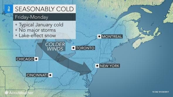 The weekend should be sunny, he said, but "As usual we will need to watch for a few rogue snow squalls and stretched-out feeder bands that may bring snow across our northern counties and the Catskills. Remember these squalls can be localized, and quickly cover over roadways."