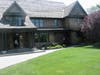 From homes within walking distance to downtown Chappaqua, the tour led to a modern rendering of an Adirondack "camp" house. The cedar-shingled Adirondack overlooks a lush lawn in the front and a small lake in the back. The roof is slate, and natural touches inside include walnut-coffered ceiling; it is one of the many architectural details in the house. Native American and other lodge-like furnishings and art were throughout the home's first floor. In back there is an infinity pool and a small spa.