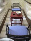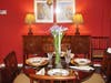 The second house was a country Tudor style cottage with a similar feel as the first. Built in the 1930s, it was renovated to include a beamed solarium with a country dining table for casual meals. The front was renovated to include a new kitchen and great room. Inside was a formal dining room with English and American antique furniture from around the early 19th century. A Meshed Persian and similar rugs were on the floor throughout the first floor.