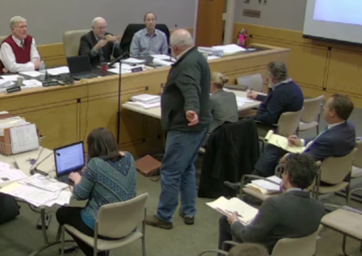 PHOTO: Will Wedge speaking at New Castle Planning Board meeting/ from video