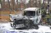 COMMACK, NY - Two people were hospitalized after a crash and car fire in Commack on Tuesday afternoon.