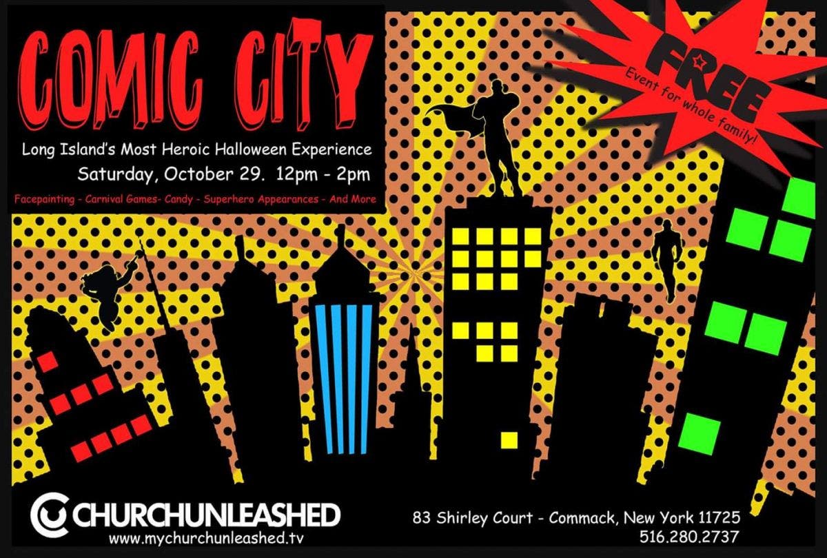 From the church that brought you CANDYLAND IN COMMMACK we now introduce you to COMMACK'S COMIC CITY.