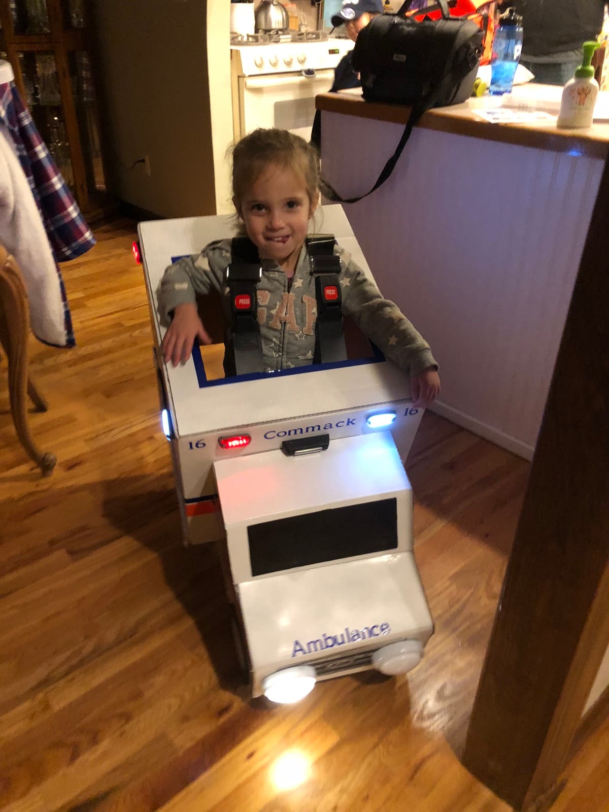 The local volunteers worked together to make an EMT and ambulance costume for two sisters this holiday.