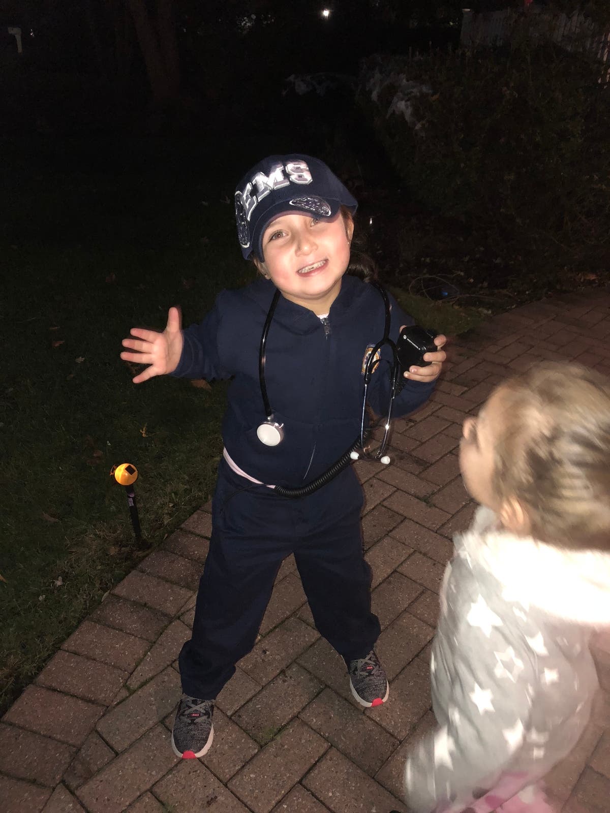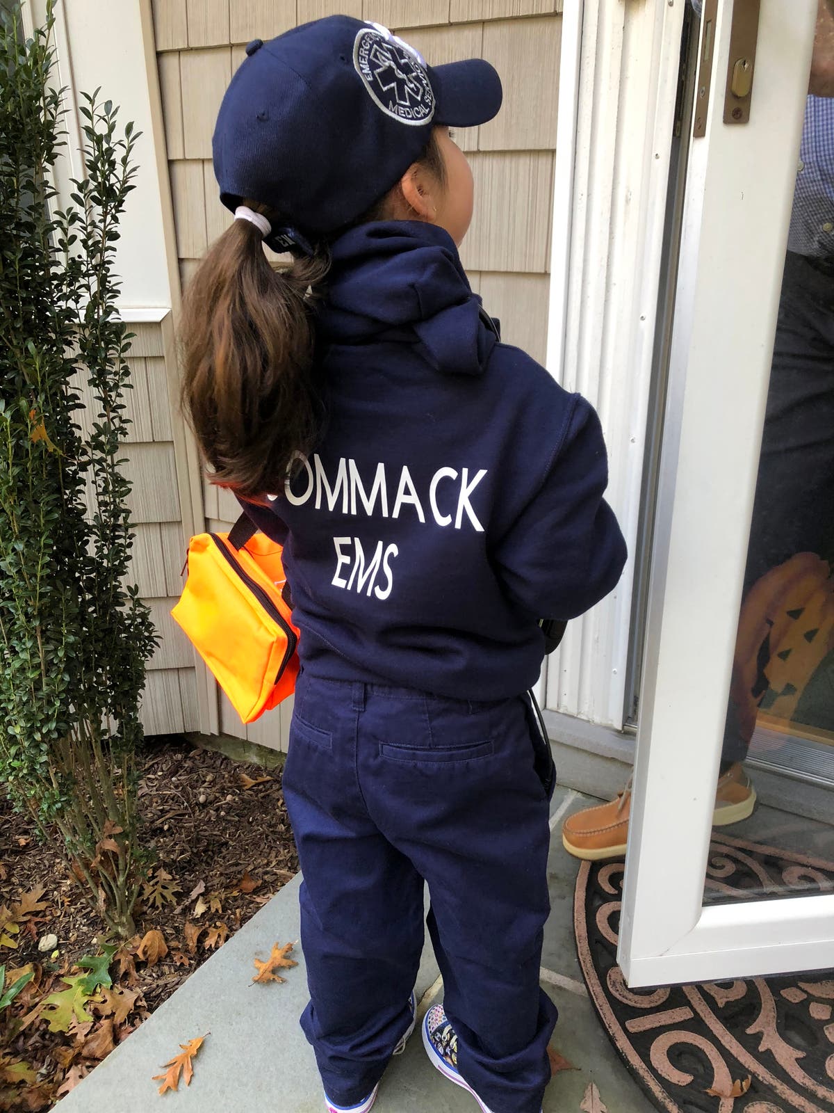 Local mom Sari Dreyfus went on Facebook to ask a Commack moms' group about finding an EMT costume for her 6-year-old daughter Ellie.