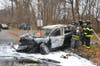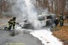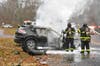 COMMACK, NY - Two people were hospitalized after a crash and car fire in Commack on Tuesday afternoon.