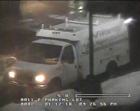 The man then fled in a white box truck with the lettering “Viking Plumbing Supply” on the side.