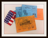 Rochelle showed us the family photograph that was taken the very day her dad and family left for passage to America. Her dad told stories about people lining up at Ellis Island. Those passengers who were ill had a marking made on their sleeve indicating they were to be sent back to their homeland. Both ill and healthy people were switching coats with each other in order to either stay in America or be sent home. When it came time to be cleared, names often were changed. Rochelle’s dad was born “Sasha Rudinski.” When “cleared,” his papers were marked (and he was renamed) “Charles Rudin.” Rochelle’s dad passed away at age 91 in 1996. The items Rochelle shared with us were in pristine condition, having survived nearly a century. Holding them we were able to feel the emotions of her family in those very early years. Rochelle also showed us the American flag that her dad and his family were presented with when they arrived at Ellis Island in 1917 (notice the 48 stars). Rochelle’s dad’s name is proudly inscribed on the wall at Ellis Island
