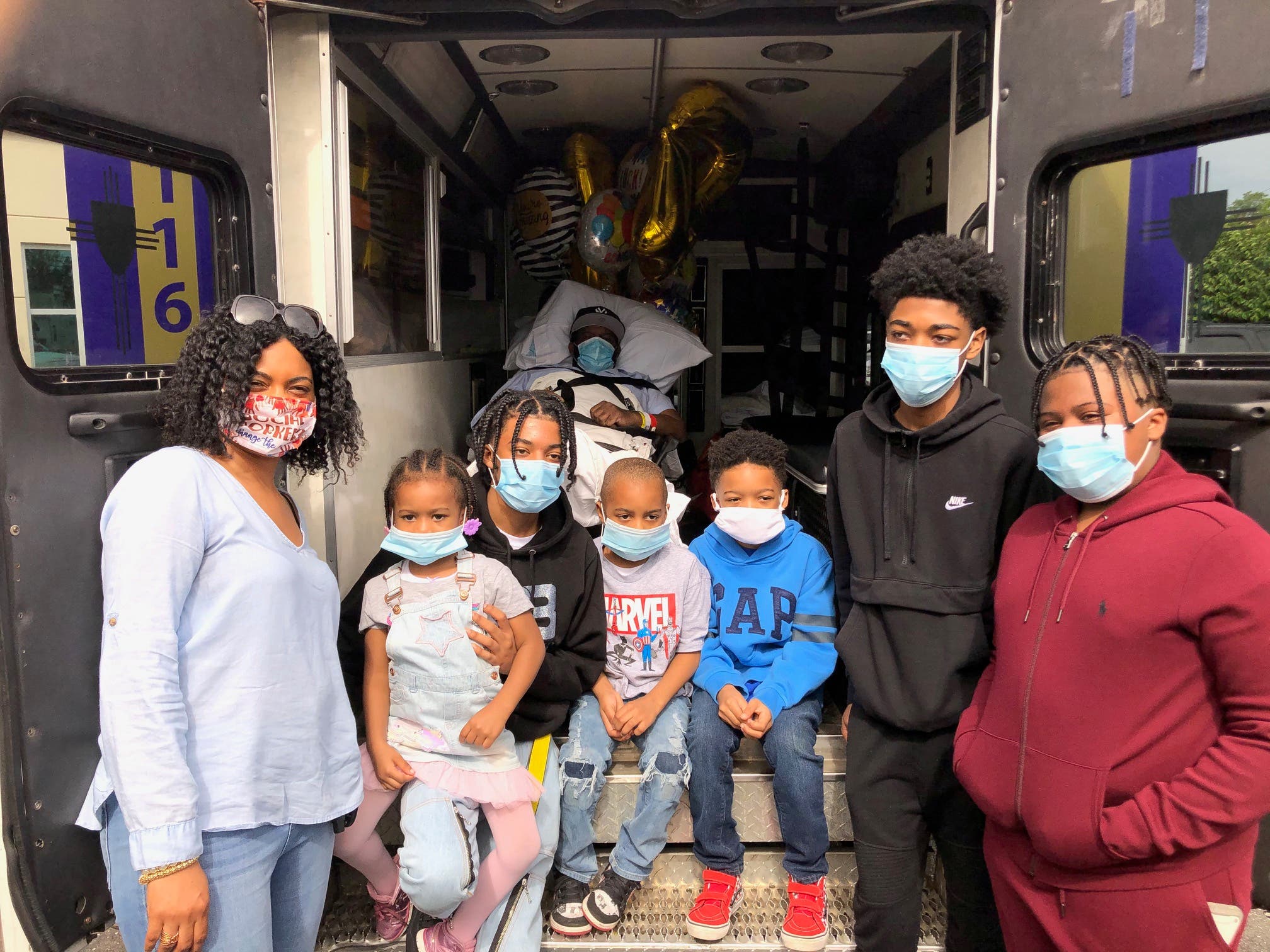 WATCH: Jerome Smith, one of the hospital's first coronavirus patients, got to see his wife and six kids for the first time in months.