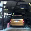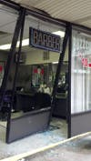 The barber shop took a direct hit from an out-of-control car, but reopened the next day to customers.