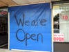 The store was closed for the rest of that Friday following the crash, but was reopened the next morning with two large wooden boards replacing the windows and a tarp noting "We Are Open" hanging from the front.