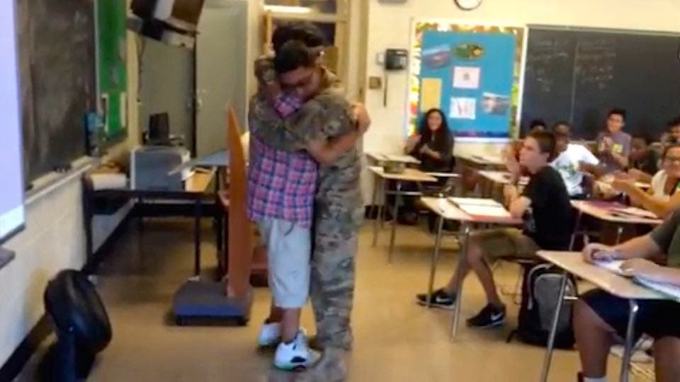Dylan was unaware his brother had returned, and their mother brought Kevin in to sign Dylan out of school as a surprise. Associate Principal Craig Evans secured permission for the reunion to take place in social studies teacher Vanessa Whitney’s classroom, where an unsuspecting Dylan was preparing for a quiz.
