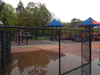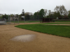 Puddles formed on the infield dirt and grass on all the fields at Pine Acres Park.