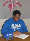 Deer Park High School star linebacker Jasawn Thompson signed a National Letter of Intent on Feb. 4 to play football for the University of Delaware, where he plans to major in health and physical education.