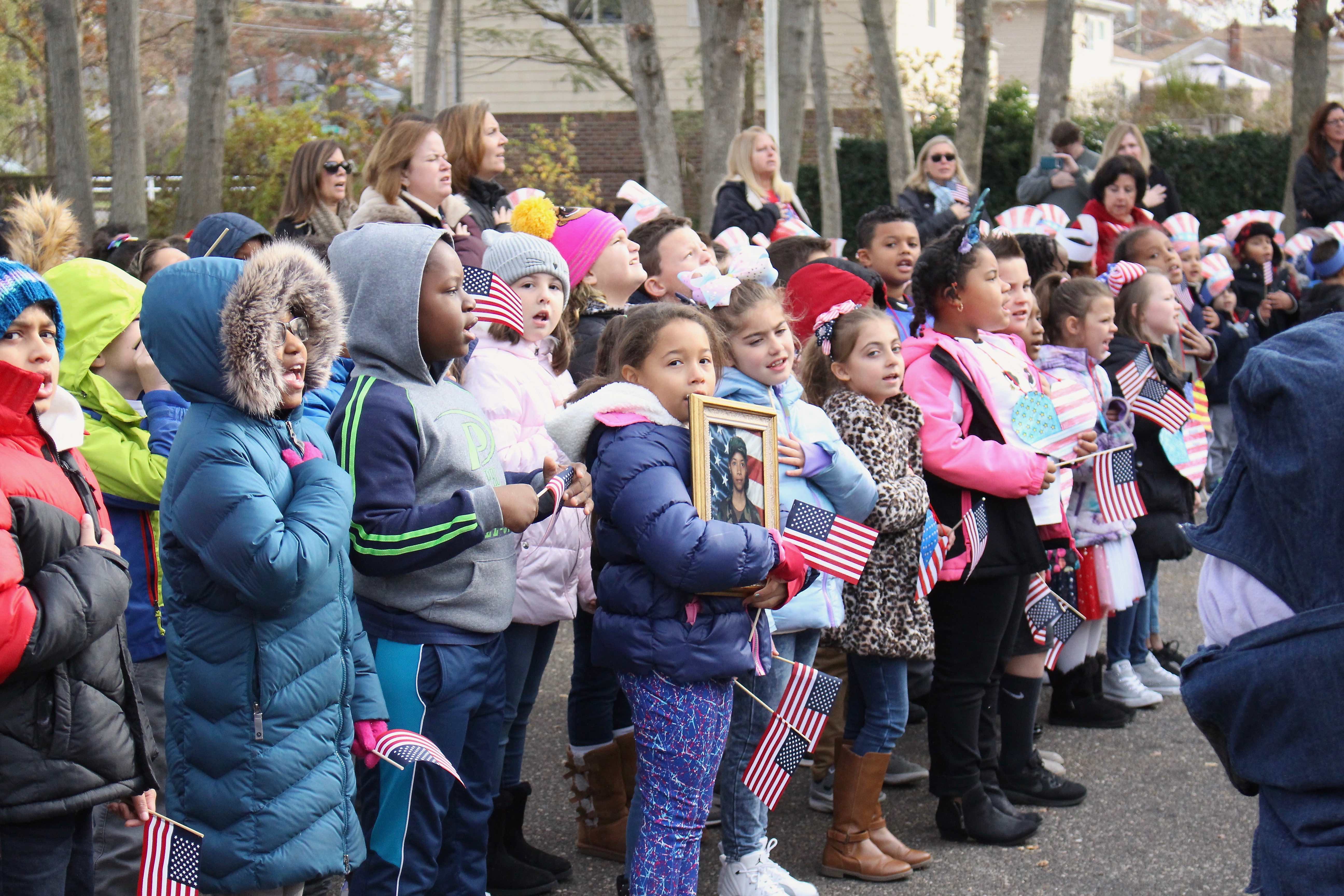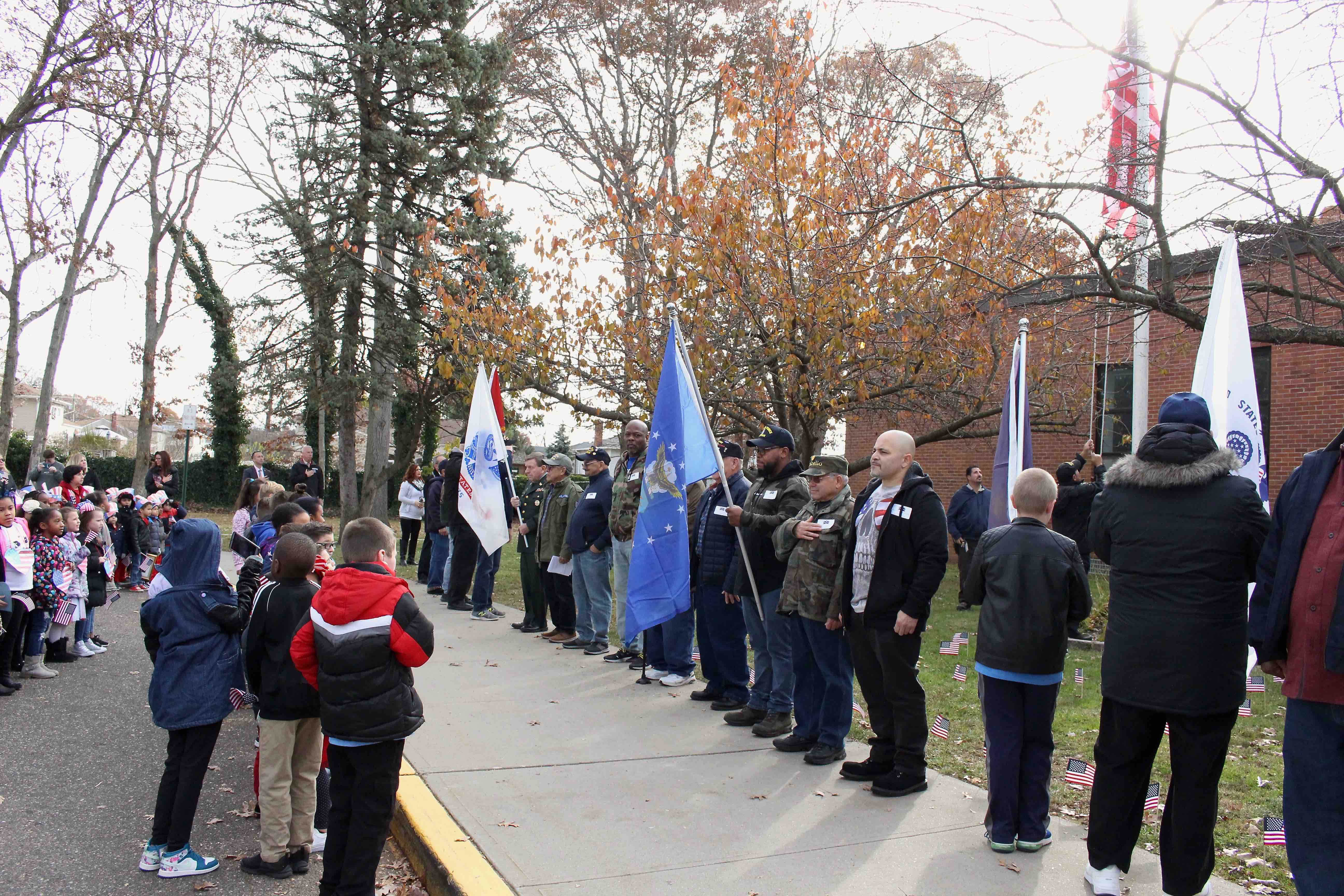 NORTH BABYLON, NY - Local veterans were honored for their years of service during a recent ceremony at Woods Road Elementary School in North Babylon. The day started off with students and veterans saluting the American flag in front of the building.