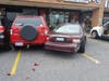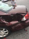 My daughter was parked in front of red mango . ( she was working and thank god not in the car) A white Mercedes hit her car and pushed it into another parked car .