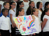 Chorus members displayed banners they had created with an anti-bullying theme.