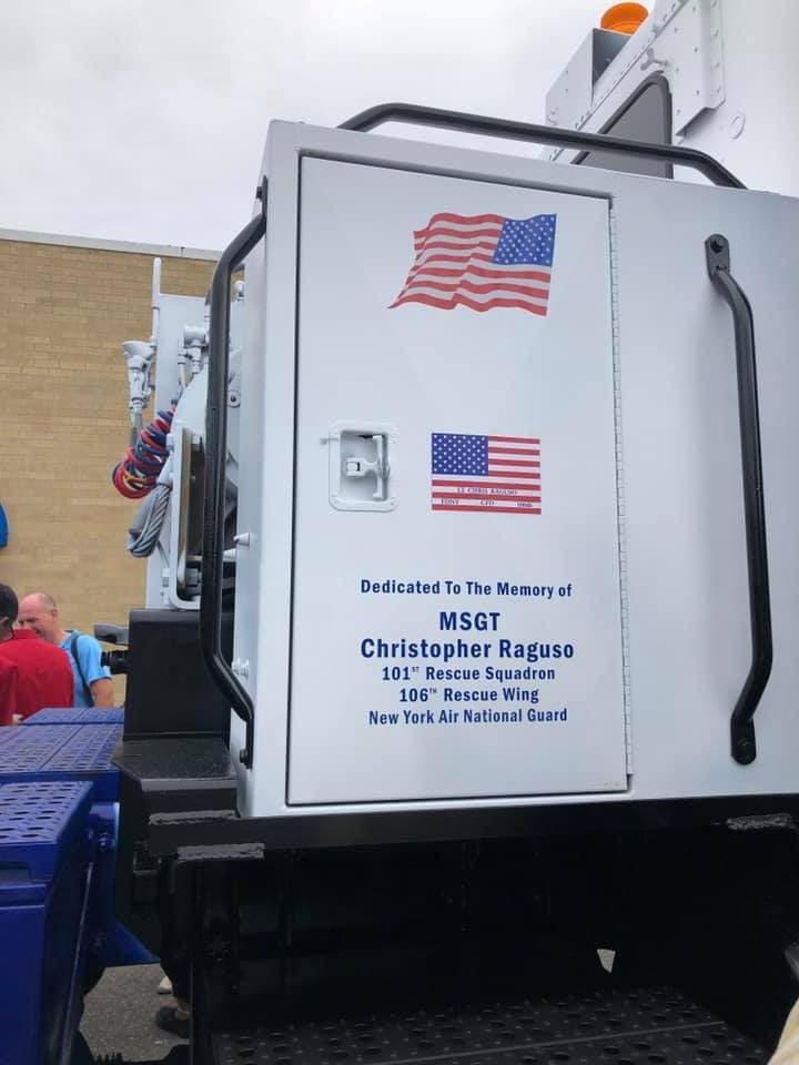 The Suffolk Police Department recently received a 10-wheel-drive semi-tractor through a military surplus and decided to name it in honor of Master Sgt. Chris Raguso, who was an Air Force master sergeant, a lieutenant in the FDNY and a volunteer firefighter for the Commack Fire Department.