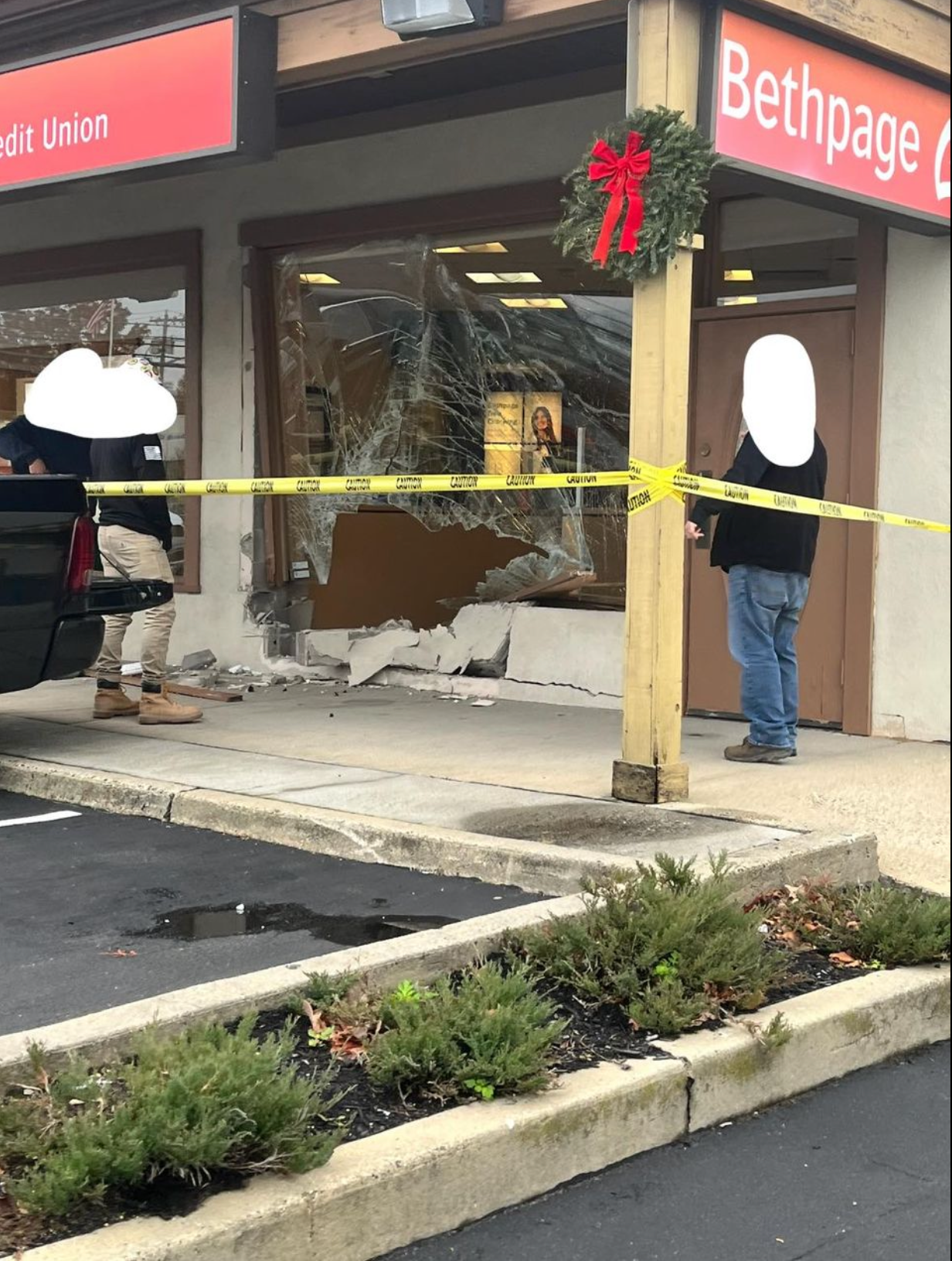 According to Suffolk County Police, officers responded to a call after an SUV hit Bethpage Federal Credit Union, located at 1350 Deer Park Ave. in North Babylon, at about 11:05 a.m.