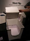 While I went to the show expecting great furniture and hopefully sustainable options (see next blog for lights made from recycled products!) I was not expecting to stumble on... the next thing in kitty litter boxes. Nice that someone took the time to re-think this design and household issue. Modko presents the “Flip”- it is an inverted version of the covered cat box, with a fold-back top for easy access, paperboard liners that are easy to remove (and treated for water-tight, no leak use). There is a handy spot to hang the poop scoop as well.