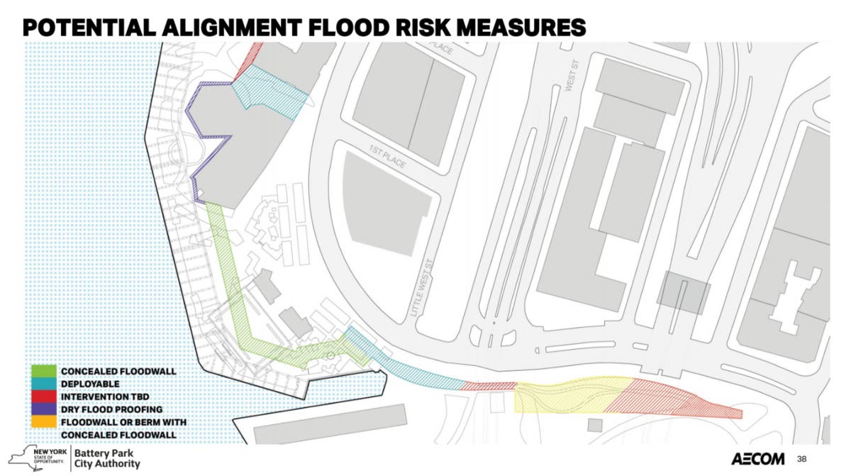 The Authority's resiliency scheme is broken into four parts: the north, west, south and a smaller portion to protect the Battery Park City ballfields.