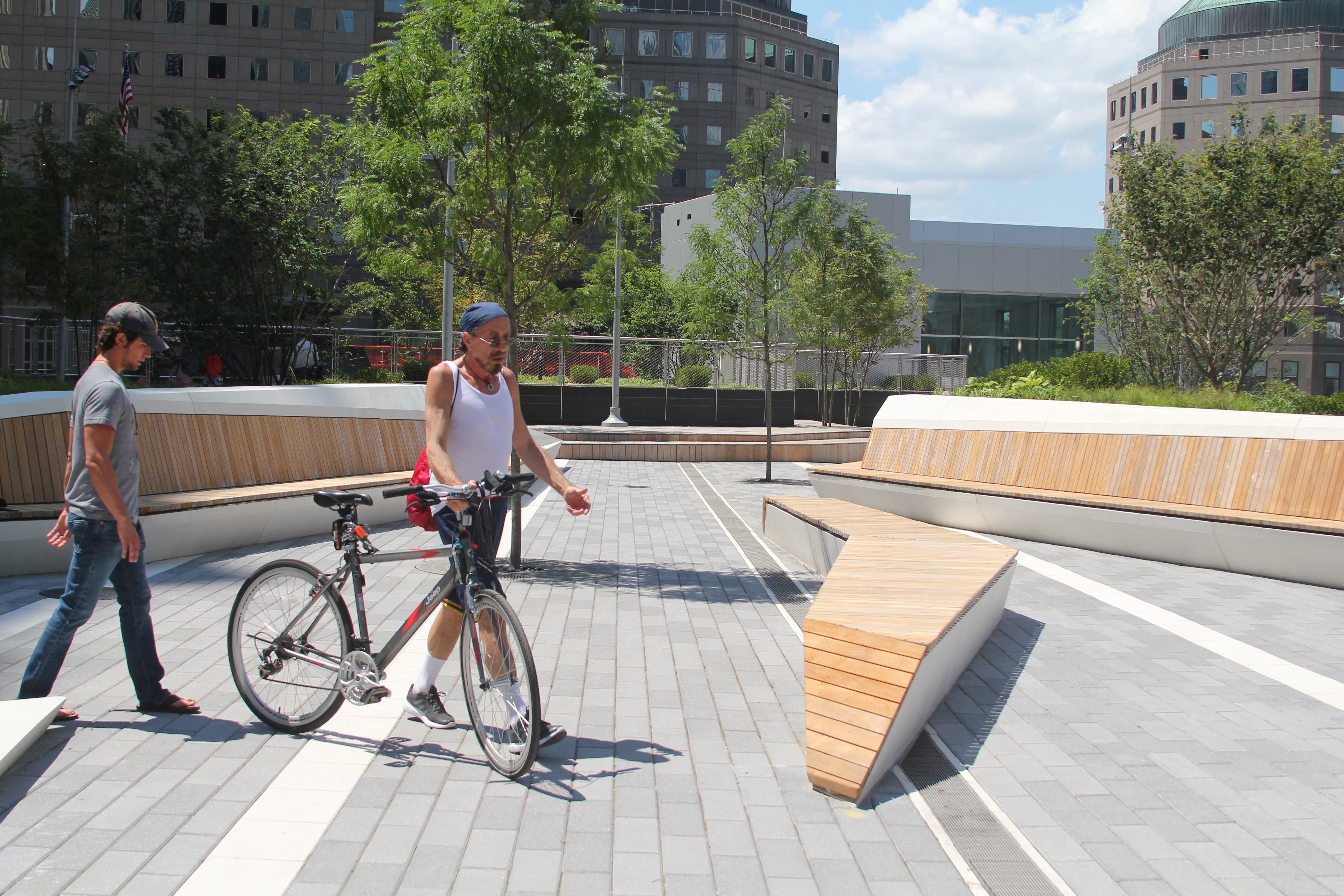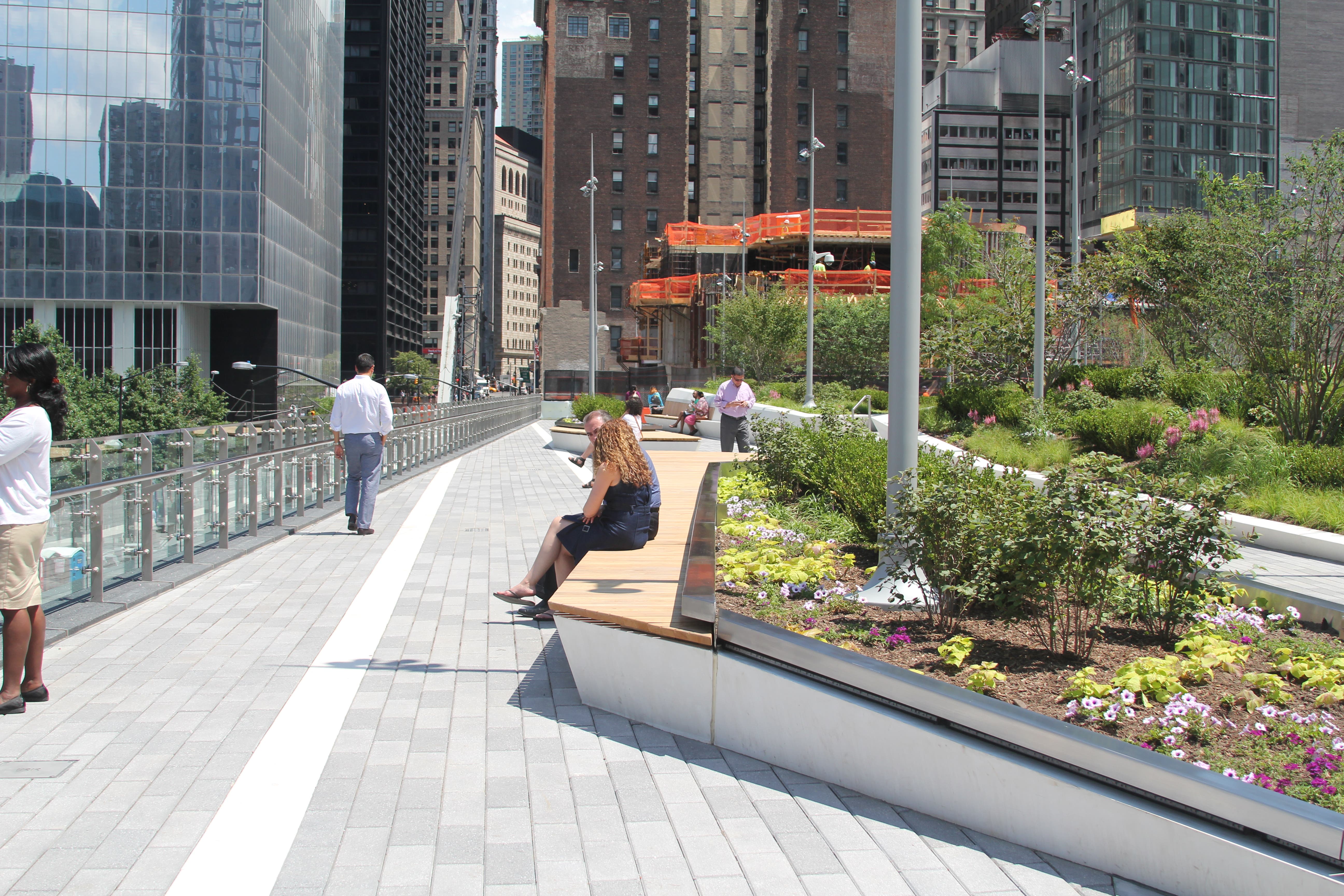 The newly-opened elevated park gives a view of the 9/11 Memorial Plaza.