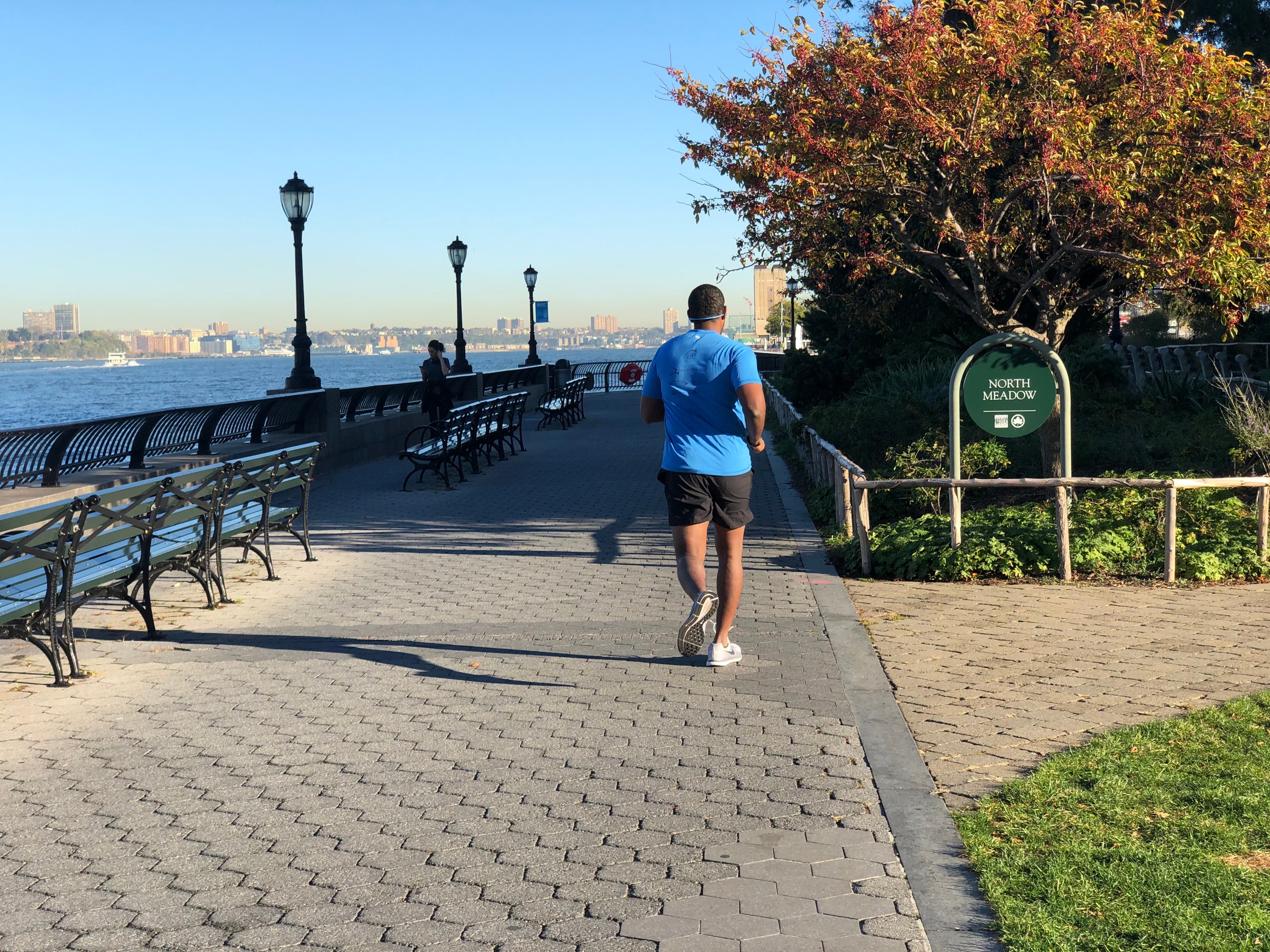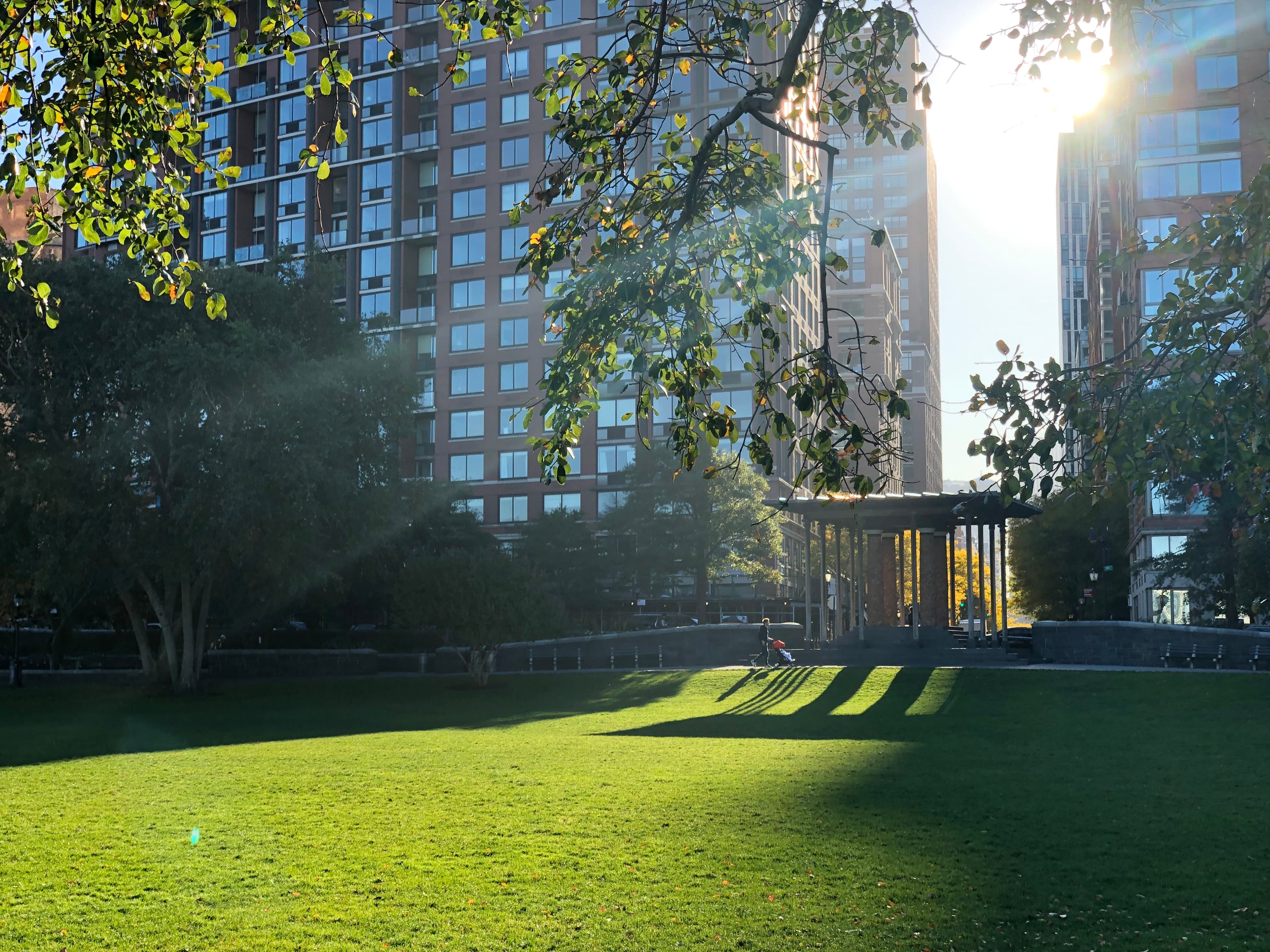 As it was still only around 8.30am the sun was slowly rising over the tall buildings, and the waterfront was beautiful and peaceful. Only accompanied by people on their morning run or walks with a stroller and/or dog, the peace and quiet really were something you don't get a lot of places in the city. Seeing the trees slowly turning yellow and orange for fall make this my favorite thing about the area by far.