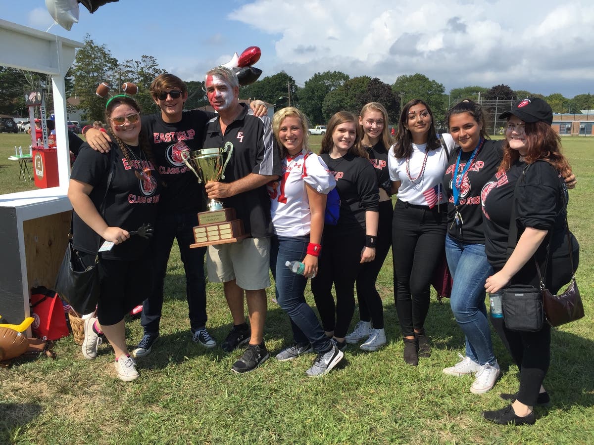 At the homecoming halftime, East Islip High School Principal William Brennen presented the inaugural Class Cup to the senior class, represented by homecoming king John Camlet