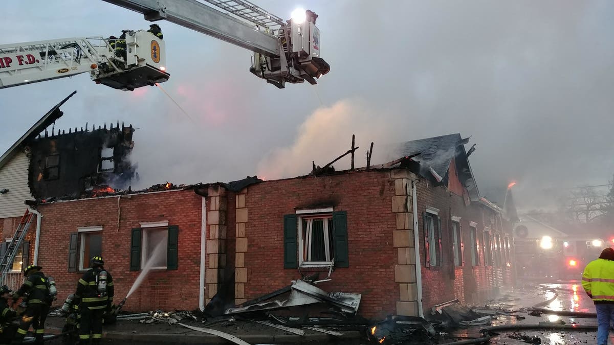 The blaze started at the law offices of John J Guadagno P C on 136 Main Street at about 6:30 a.m.