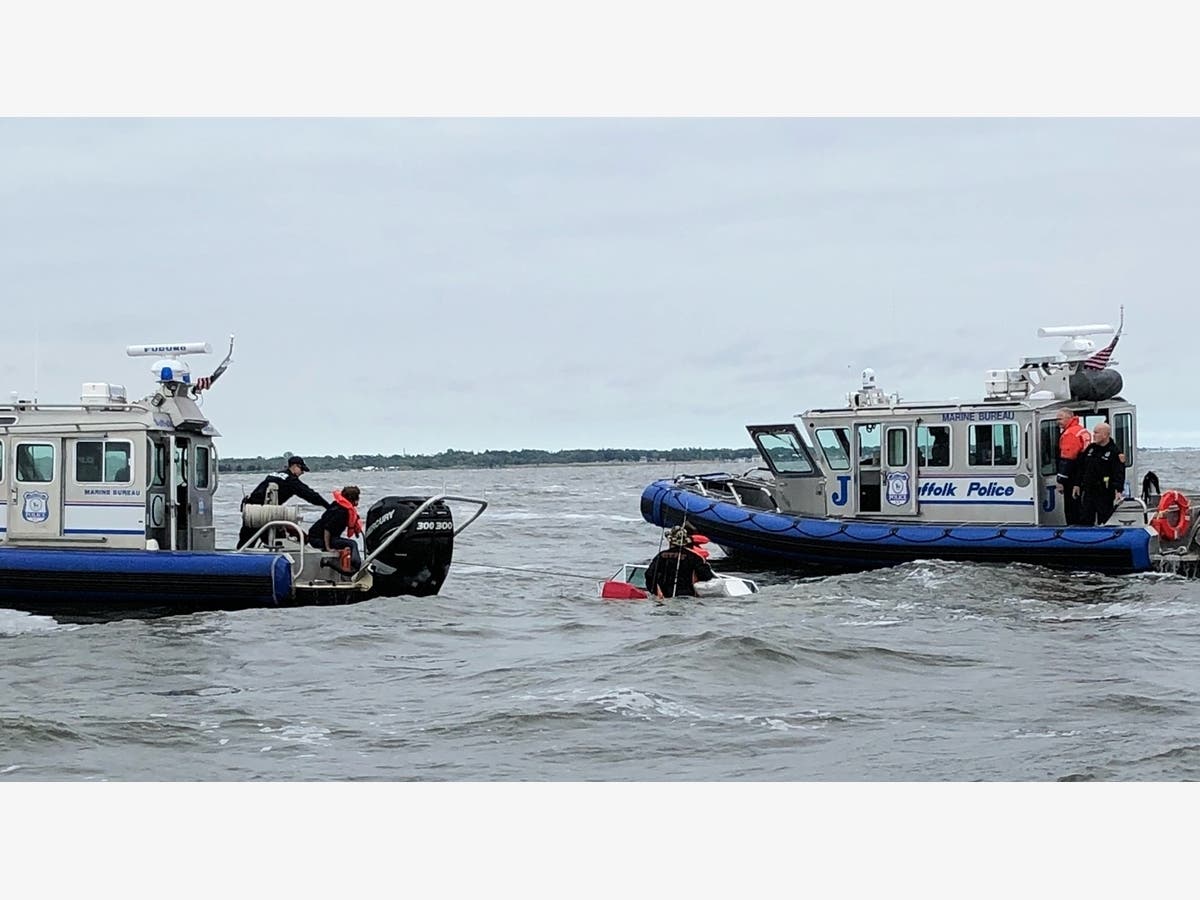 Officers responded immediately and arrived within minutes to find the vessel, a 1987 19-foot Four Winns, completely under water and the four people, 56-year-old Juliann Gibson of Islip Terrace; 53-year-old Jacqueline Calderon, of Islip Terrace; 57-year-old Charles Doxsee, of Mastic Beach and 53-year-old Kenneth Marmo, of Islip, were in need of rescue.