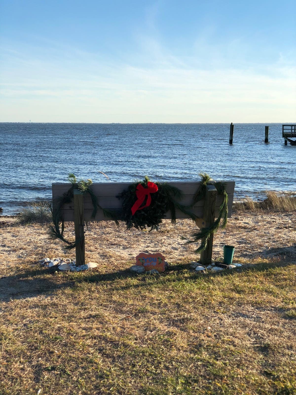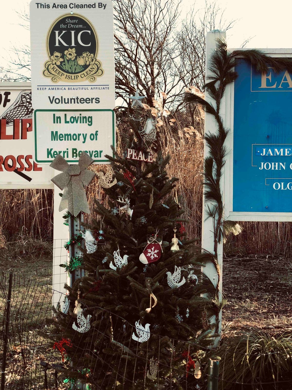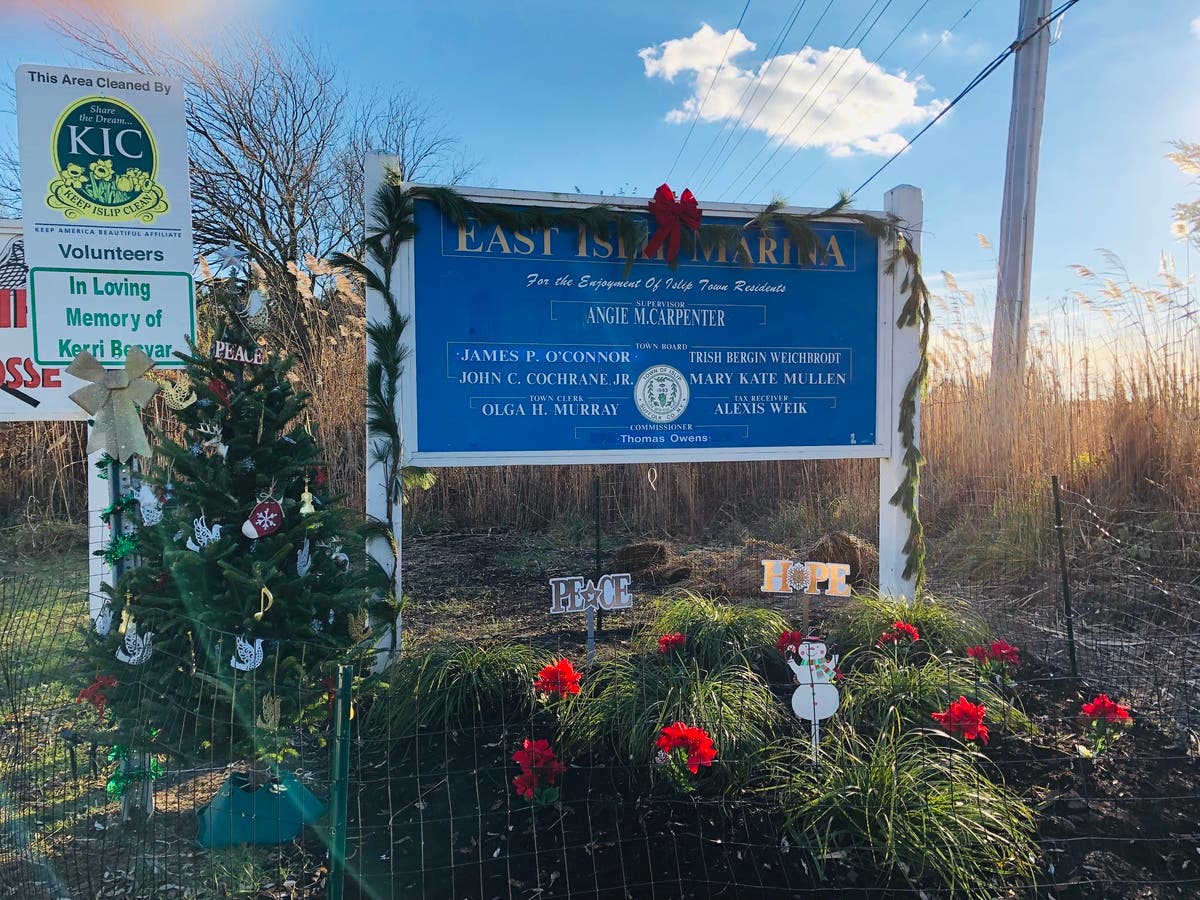 Jeanne Becvar went down to the East Islip Marina on Saturday to decorate the entrance sign as well as a memorial bench with garland, bows, a mini Christmas tree and more all for her daughter, Kerri Becvar.