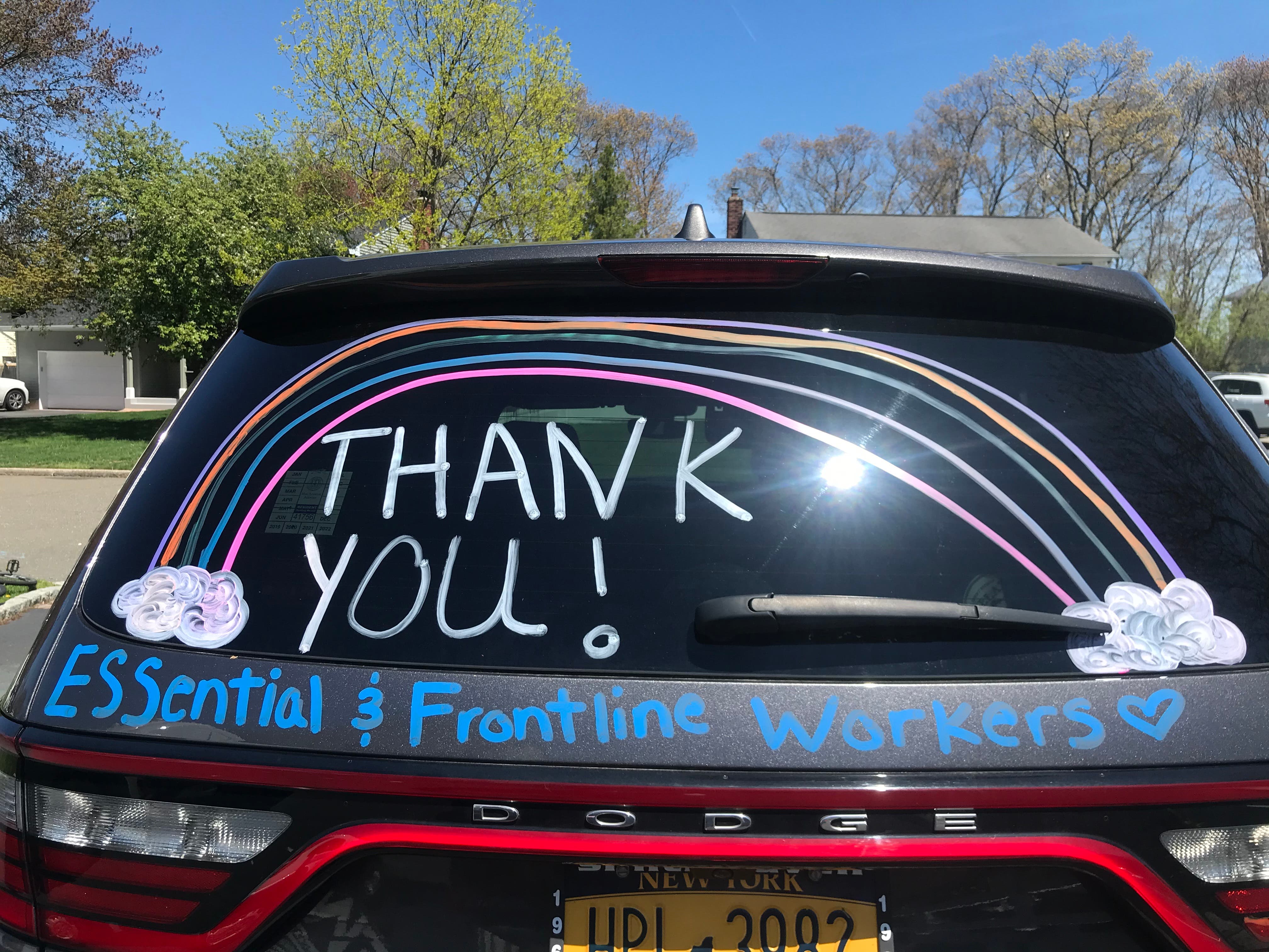 Local resident Eric Maury organized a special car parade and the construction of a special display to help thank essential workers.